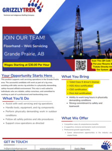 This position supports well servicing operations in the Grande Prairie area. The successful candidates will work as part of a rig crew. assisting with daily service rig activities in a physically demanding, safety-focused oilfield environment. This role is well suited to individuals who are reliable, safety-conscious, and committed to working as part of a professional and hardworking crew.
