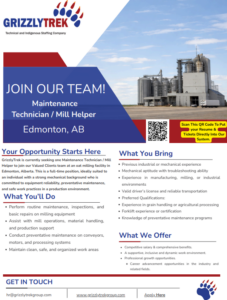 Maintenance Technician / Mill Helper – Edmonton,Ab